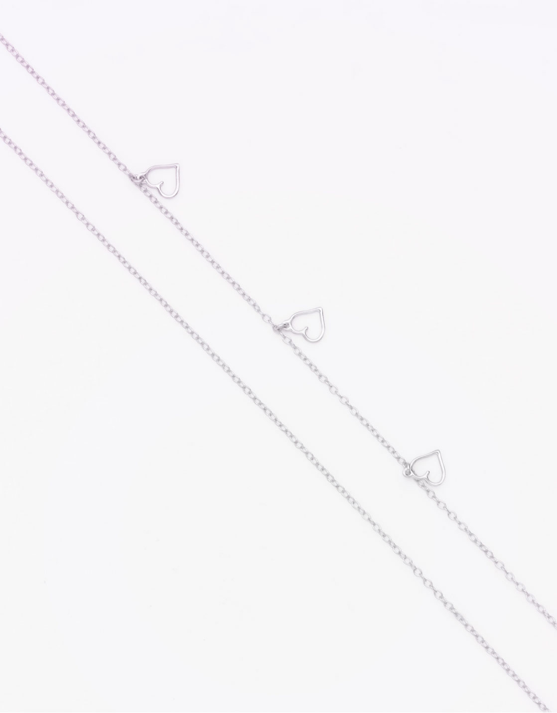 Cette chaine dispose de trois petits cœurs sur un côté. Elle est d'une longueur de 110cm et ajustable sur 10 cm.