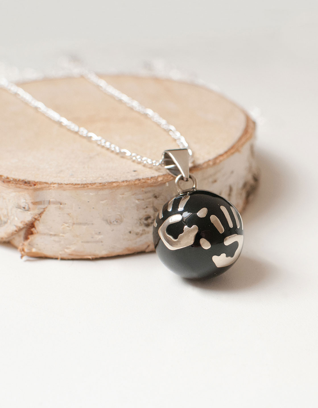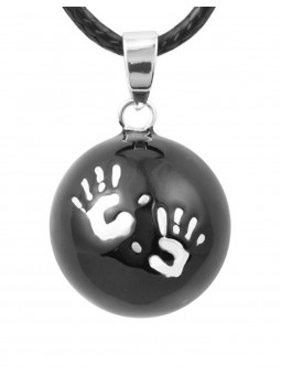 Ce bola de grossesse est un ravissant bijou rond de couleur noir orné de Petites Mains Argentées.