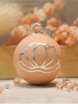 Apaisez votre bébé tout au long de votre grossesse et après sa naissance grâce au son doux et harmonieux du bola de grossesse fleur de lotus nude plaqué argent, glissé sur un cordon noir.