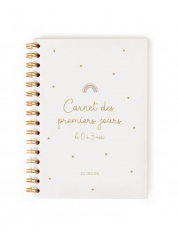 Le carnet des Premiers Jours permet aux jeunes parents de noter et suivre l'évolution de bébé de la naissance jusqu'à ses 3 mois et demi.