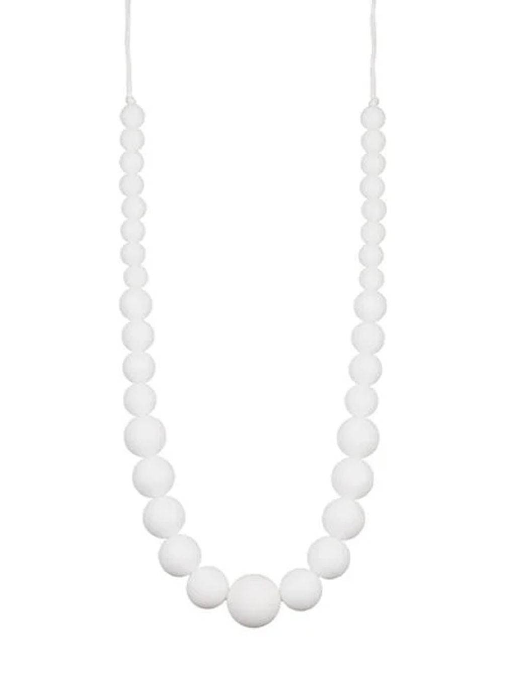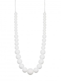 A offrir ou s'offrir à l'arrivée de bébé, le collier mâchouillable Louise est un collier de perles blanches rondes en silicone dont bébé ne pourra plus se passer.