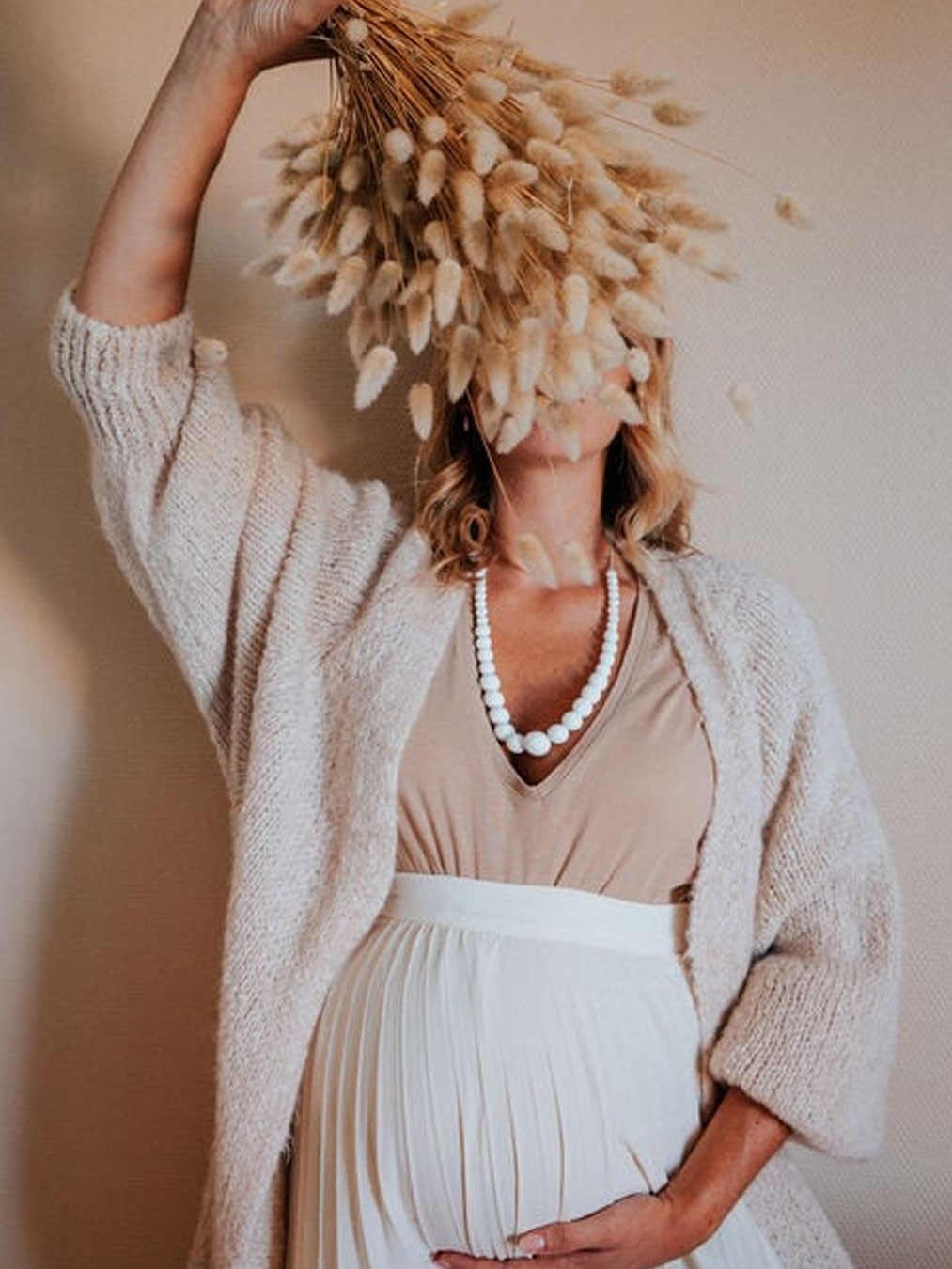 Le collier d'allaitement, de portage et dentition Louise en perles rondes blanches s'associe parfaitement avec vos jolies tenues, et bébé adore les mâchouiller!