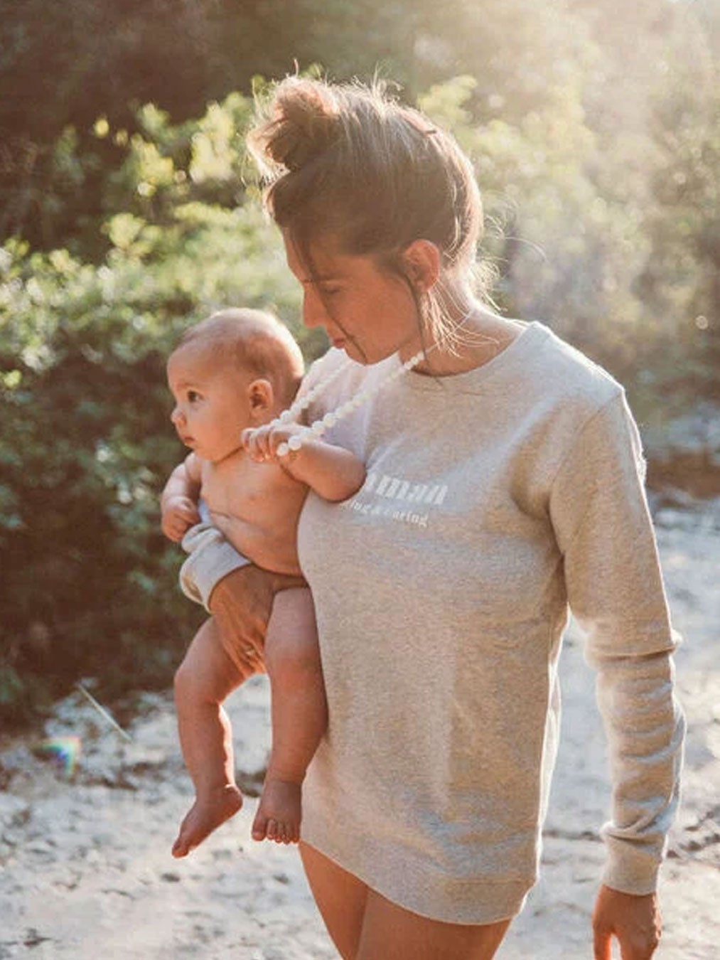 Car lorsque bébé est dans nos bras, porté en écharpe ou porte bébé tout contre nous, il adore attraper nos colliers et cette fois-ci il peut les attraper et mâchouiller à loisir, ces colliers sont prévus pour occuper les petites mains de bébé avec lequel il va jouer et pourra aussi l'utiliser pour faire ses dents