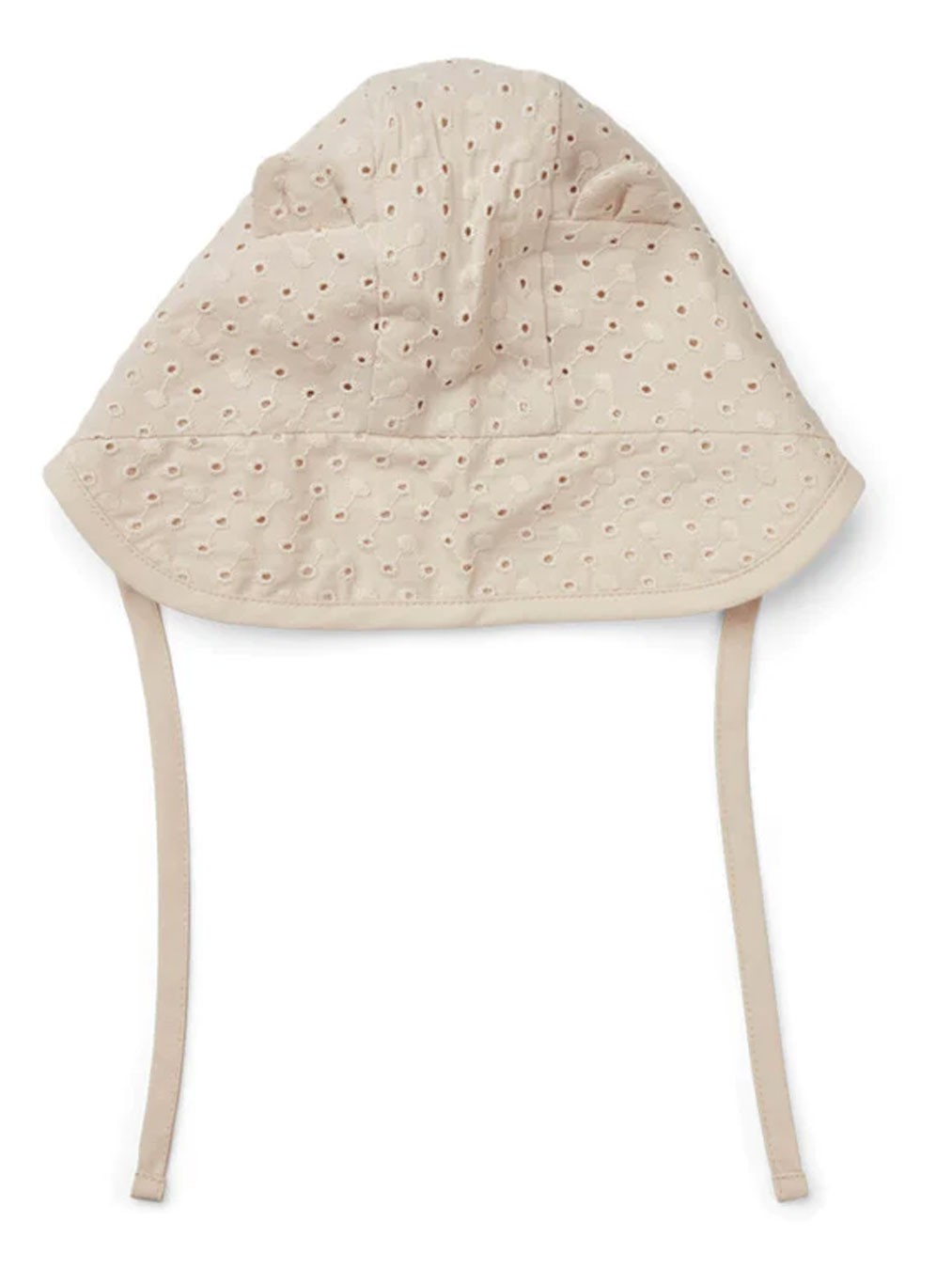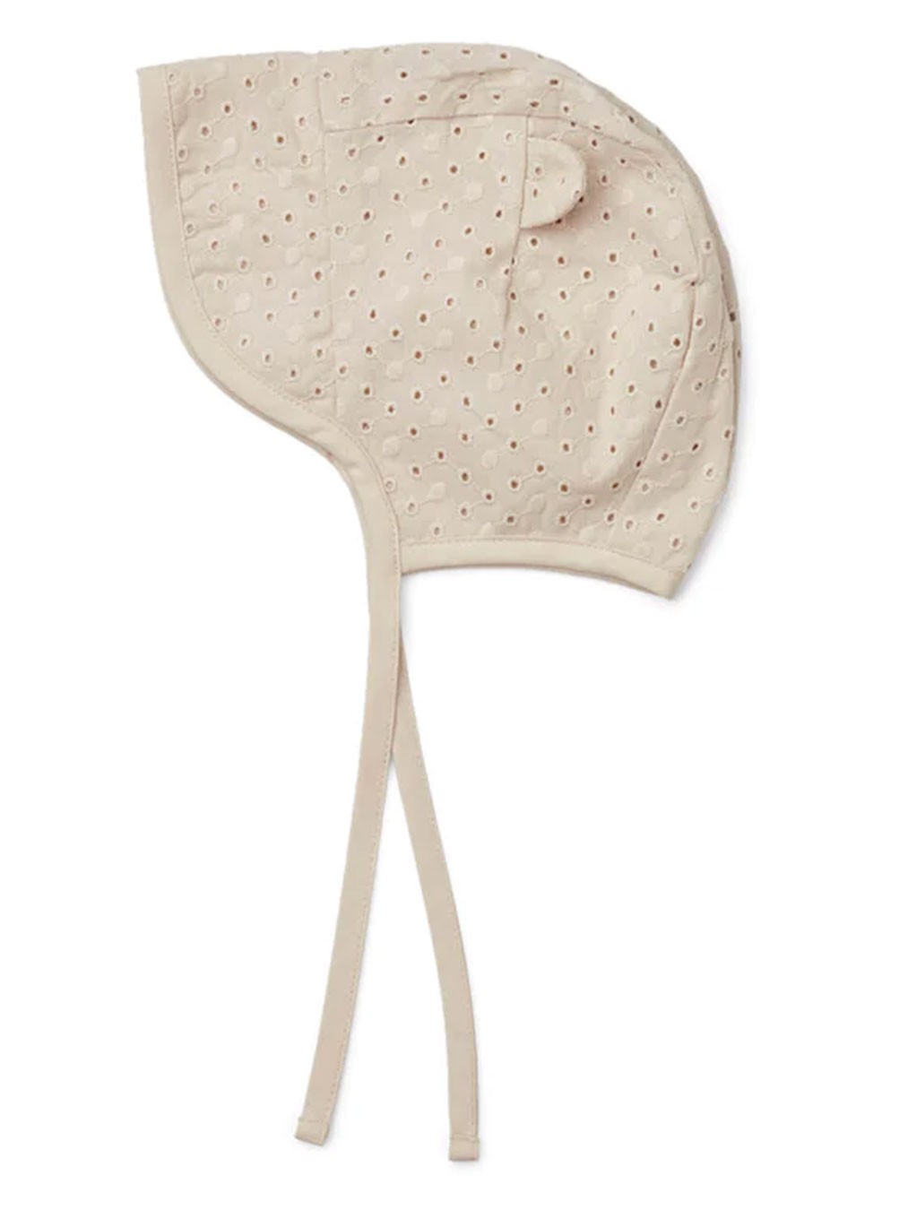 Protégez les têtes fragiles des touts petits avec le béguin Raé de chez Liewood, en coton bio avec broderies anglaises.