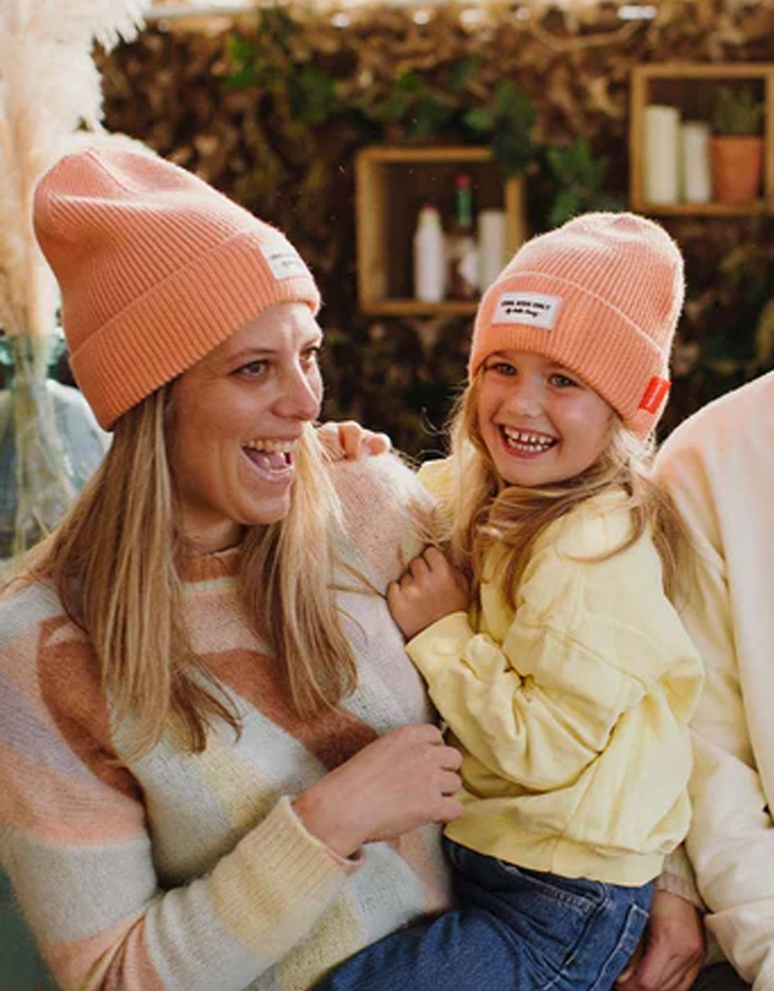 Bonnet couleur nude chiné confortable pour maman au design soigné propre à la marque française Hello Hossy à matcher avec les bonnets assortis pour enfants!