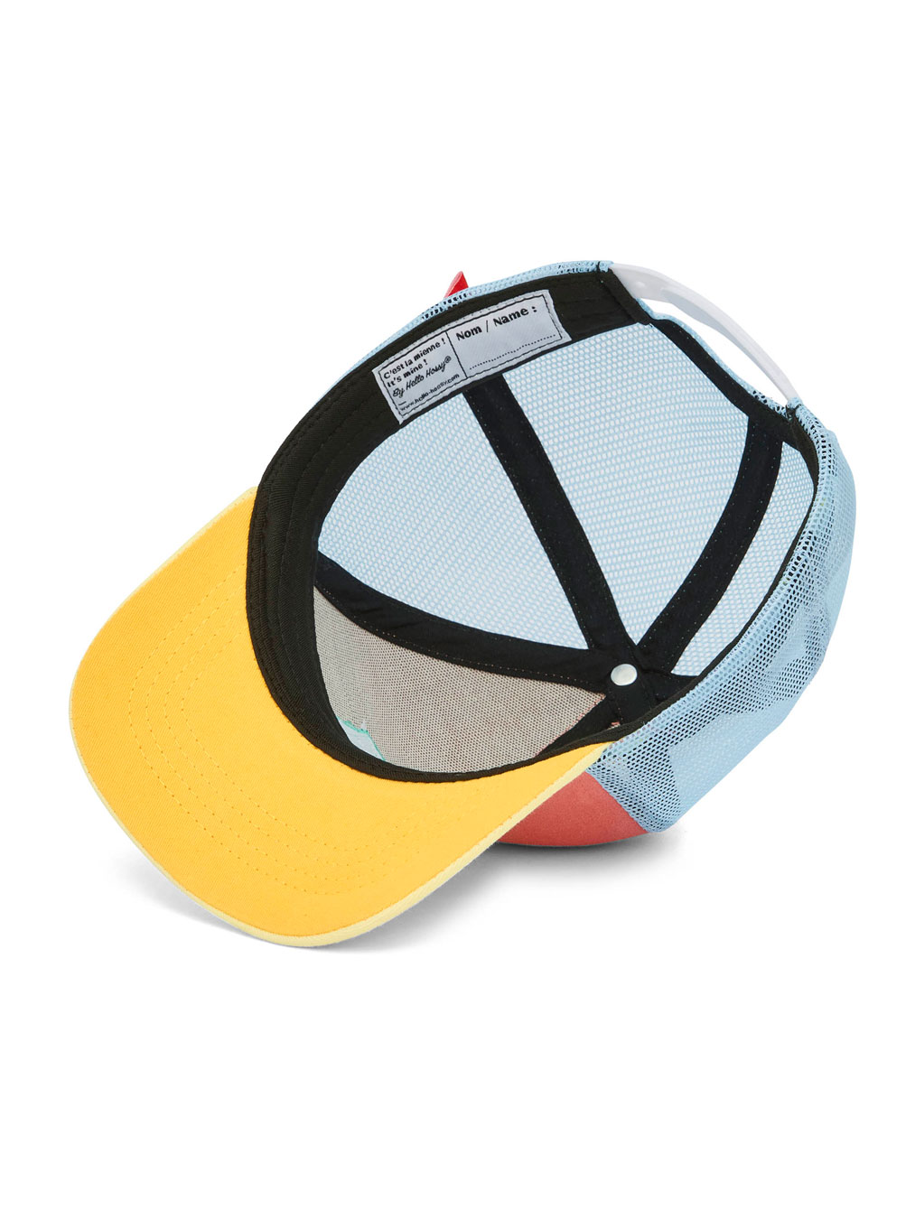 Une attache réglable blanche à l'arrière permet de bien maintenir la casquette sur la tête des enfants.