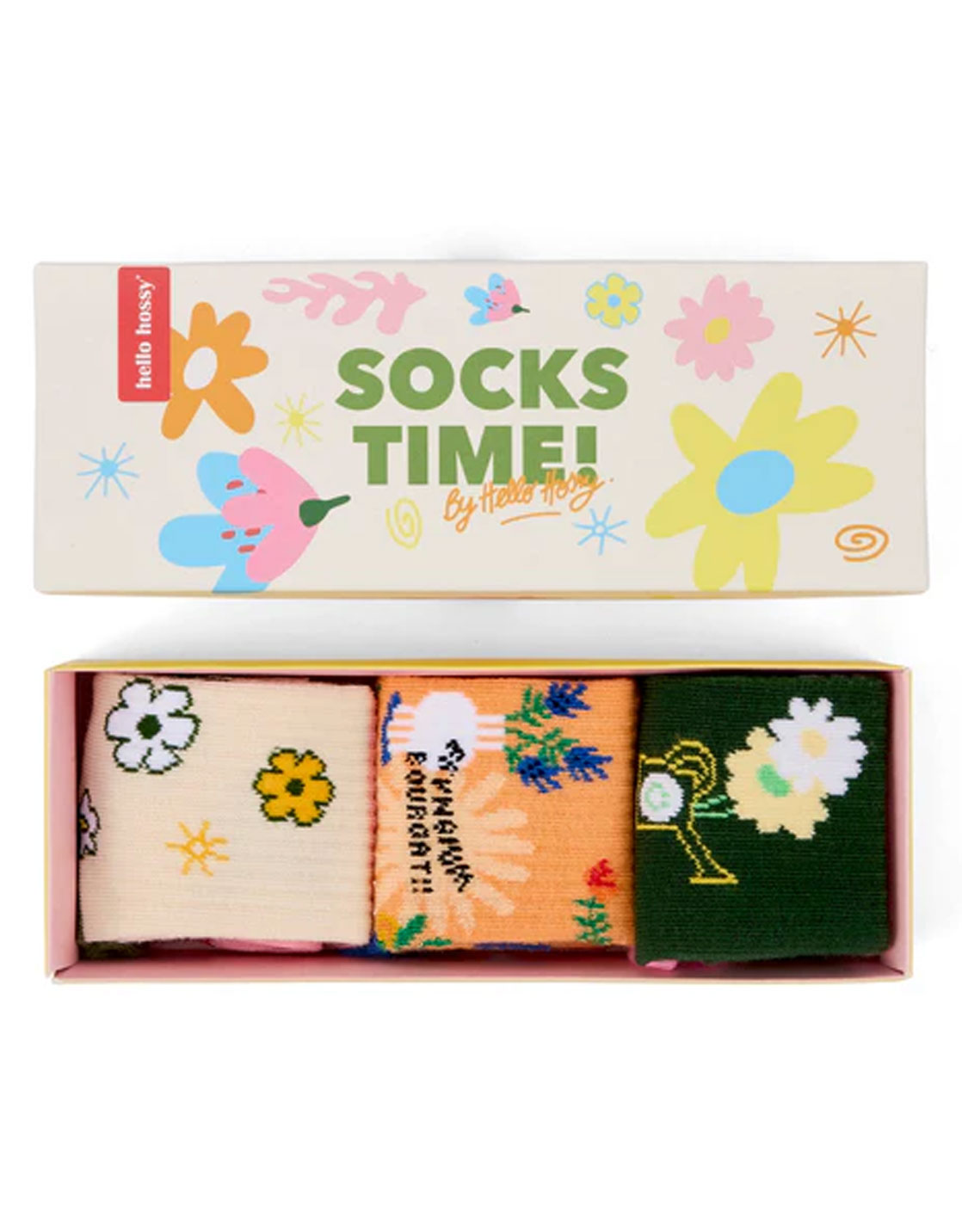 Une chouette idée cadeau la box prête à offrir de 3 paires de chaussettes Wildflowers : des chaussettes fleuries, colorées, et en coton tout doux pour envelopper les petits pieds de nos minis.