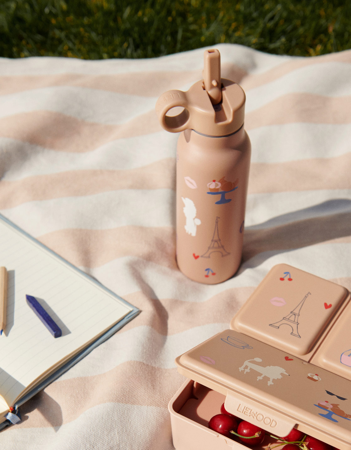 Retrouvez tous les dessins qui rappellent la ville de Paris avec cette gourde "Paris" de chez Liewood !