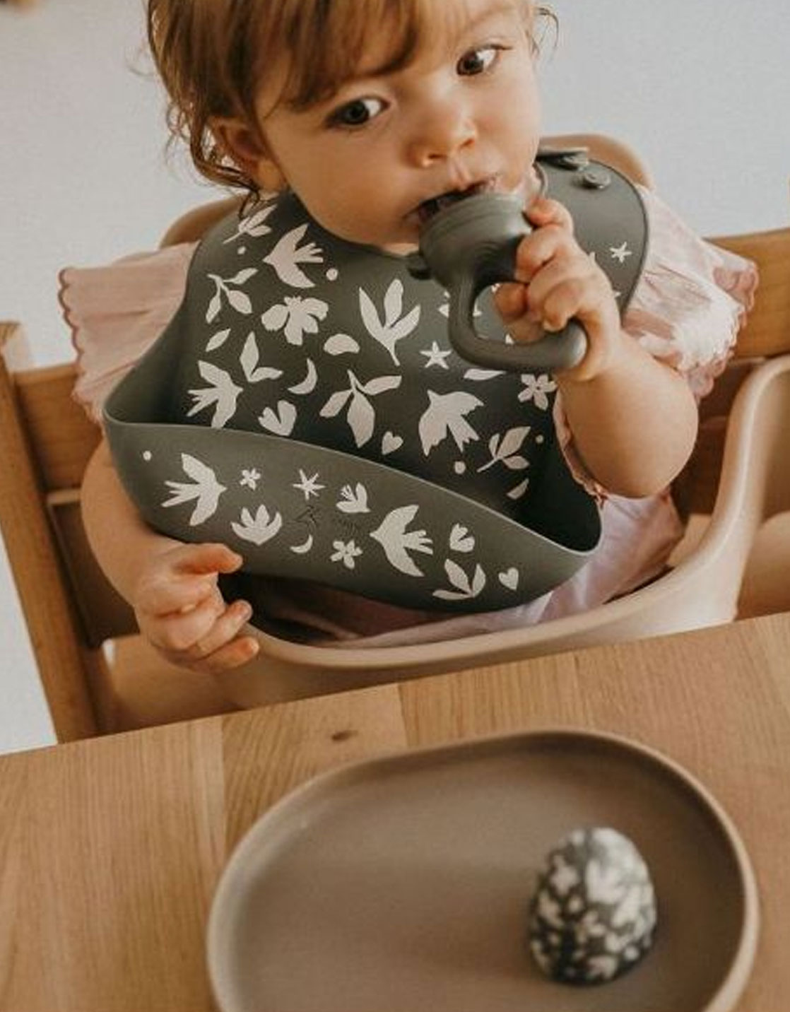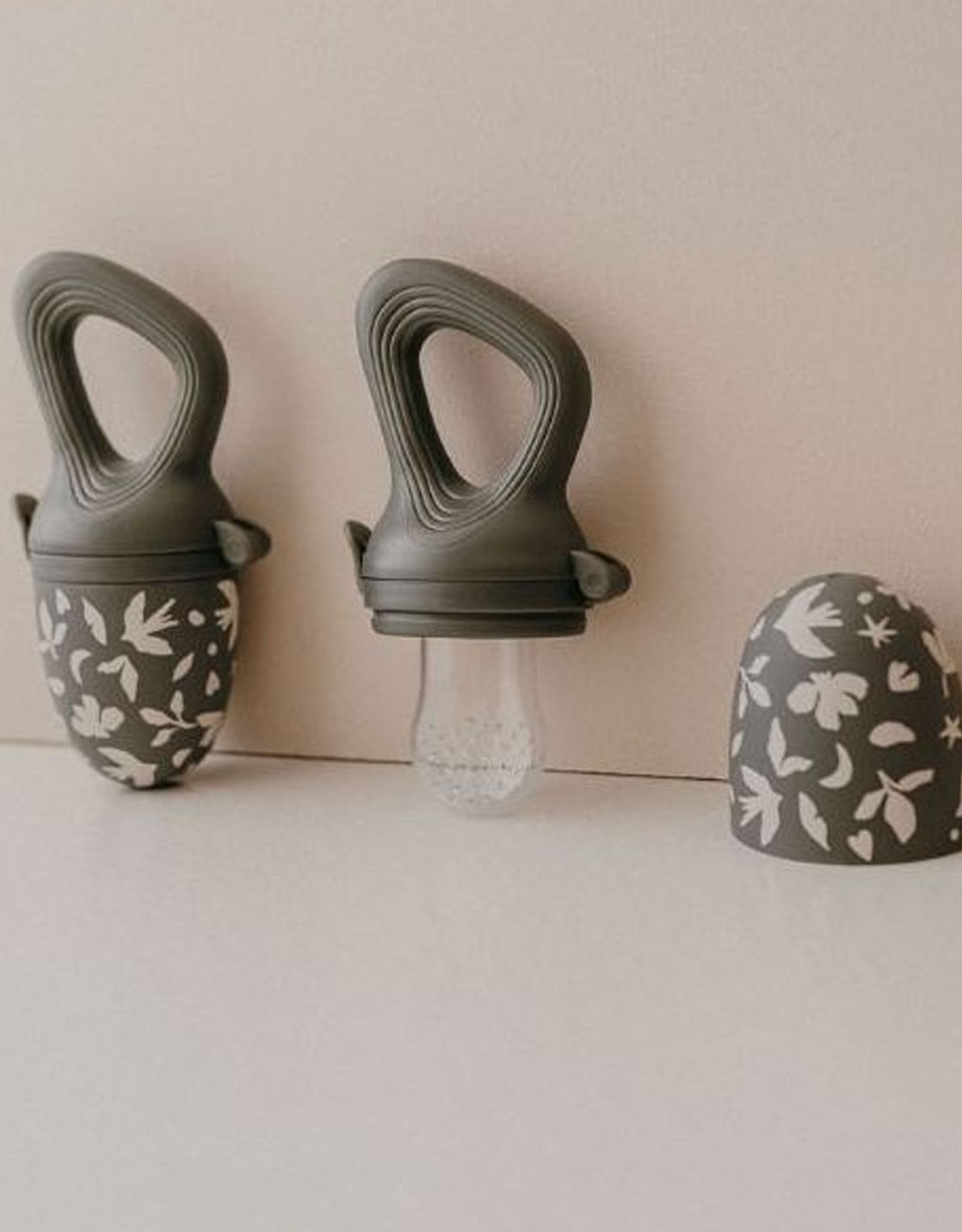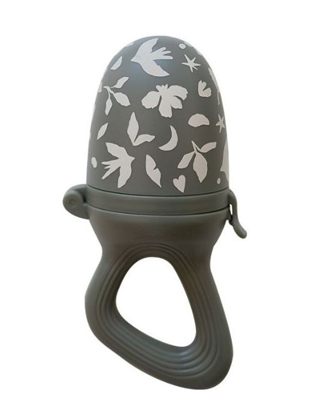 Faîtes goûter les fruits et légumes à bébé en le laissant déguster tout seul avec la grignoteuse décorée d'oiseaux sur fond vert, collection "Birdy".