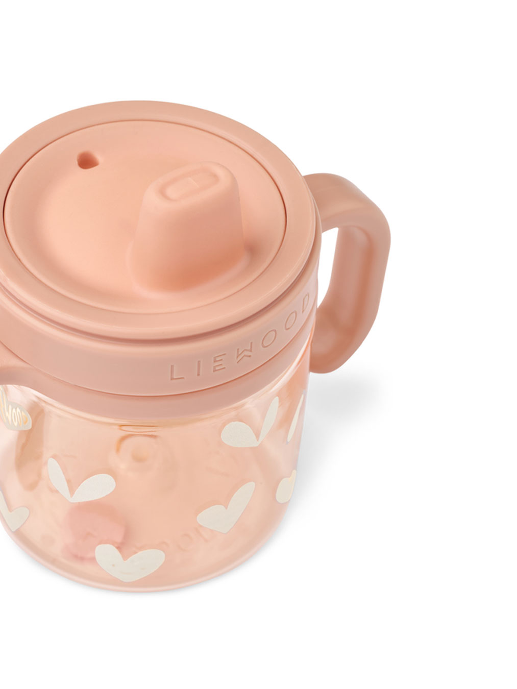 Pour faire la transition entre le biberon et le verre, cette jolie tasse à bec en tritan de la collection remplie d'amour Sweethearts est idéale. Son couvercle en silicone est souple, parfait pour les gencives de bébé.