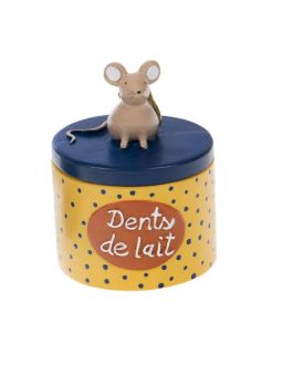 La boîte à dents "Liam" jaune est toute mignonne avec sa petite figurine souris sur le couvercle. Cette jolie boîte est une idée cadeau de naissance ou anniversaire, elle servira d'objet de décoration dans la chambre des enfants.
