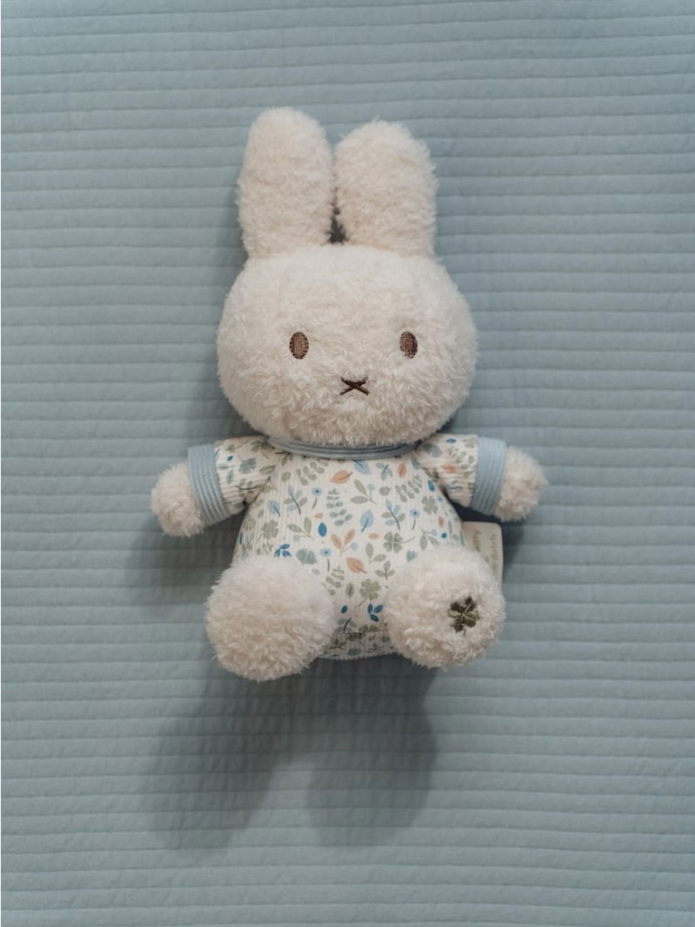 La Peluche Miffy de la collection Lucky Leaves de Little Dutch mesure 20 cm et est prête à se nicher dans les bras de bébé pour lui faire de tendres câlins.