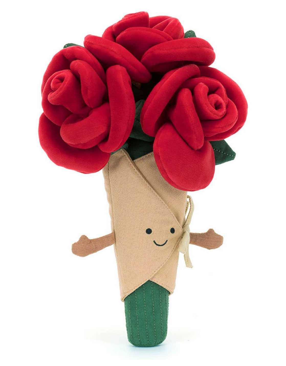 Quelle douce attention ce bouquet de roses enveloppé dans son ruban en lin, avec deux drôles de petites mains qui veulent vous faire un câlin!