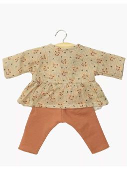 Ensemble top Ophélia en crêpon motif floral et son legging cassonade, à enfiler sur les poupées Minikane.