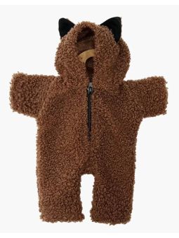 Adorable combinaison petit chat en bouclette marron, à enfiler sur les poupées Minikane.