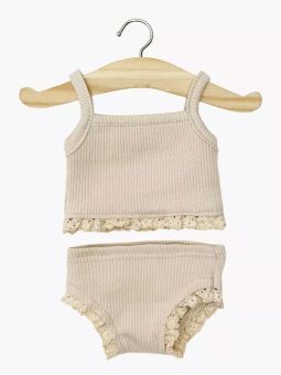 Les poupées vont être à tomber dans ce joli dessous deux pièces couleur latte tout doux et facile à enfiler composé d'une culotte et brassière en maille côtelée et dentelles.