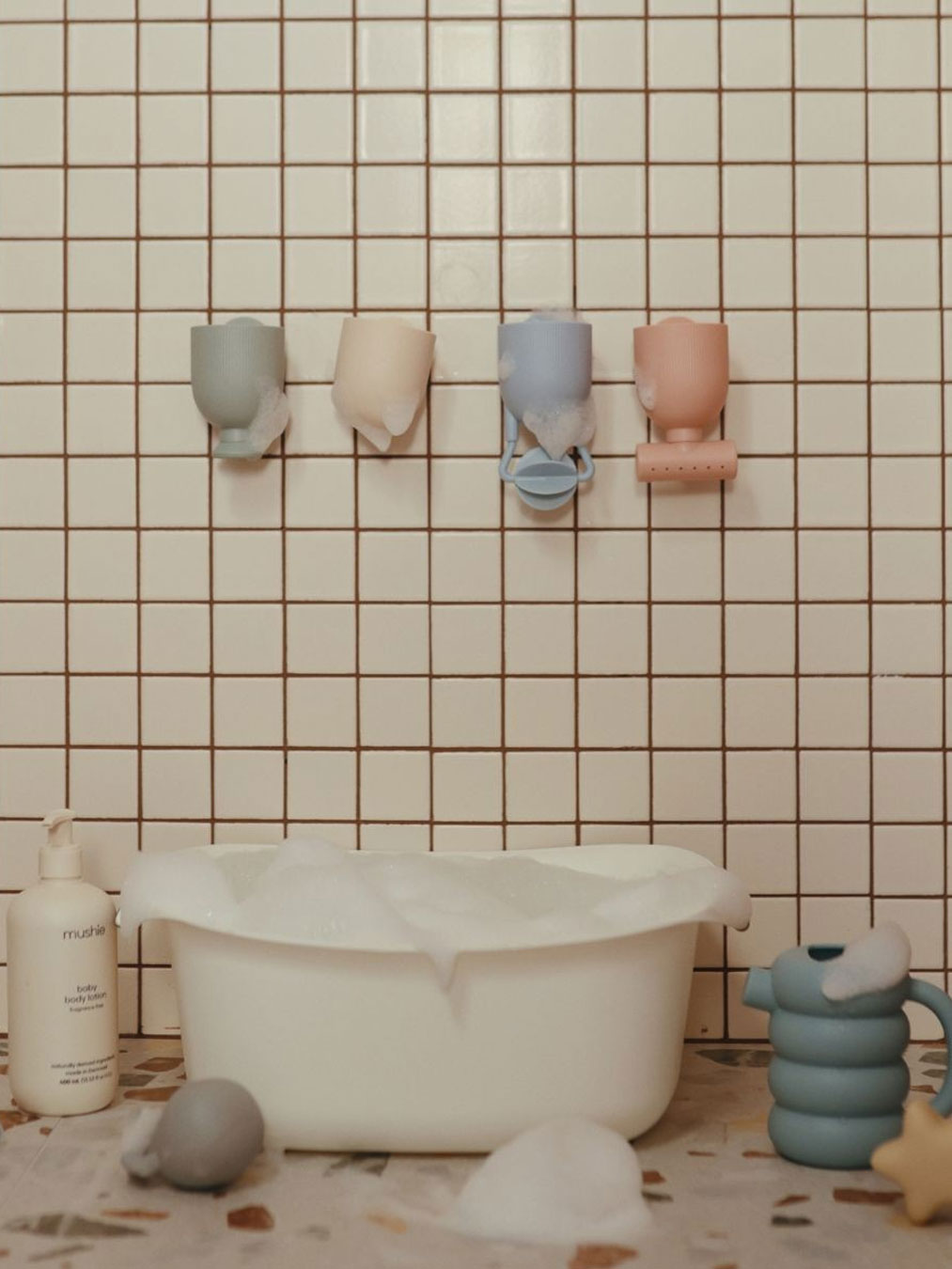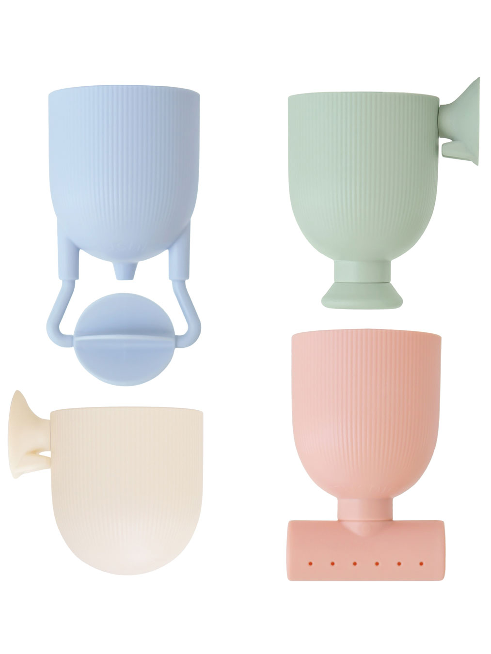 C'est l'heure du bain ! Amusez vous avec le set de 4 gobelets à ventouser aux parois de la baignoire ou de la douche.