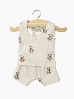 Ensemble de dessous pour poupons composé d'un haut marcel et d'un shorty assorti en maille côtelée aux motifs petits oursons. Une tenue sympa pour compléter le dressing des poupées Minikane.