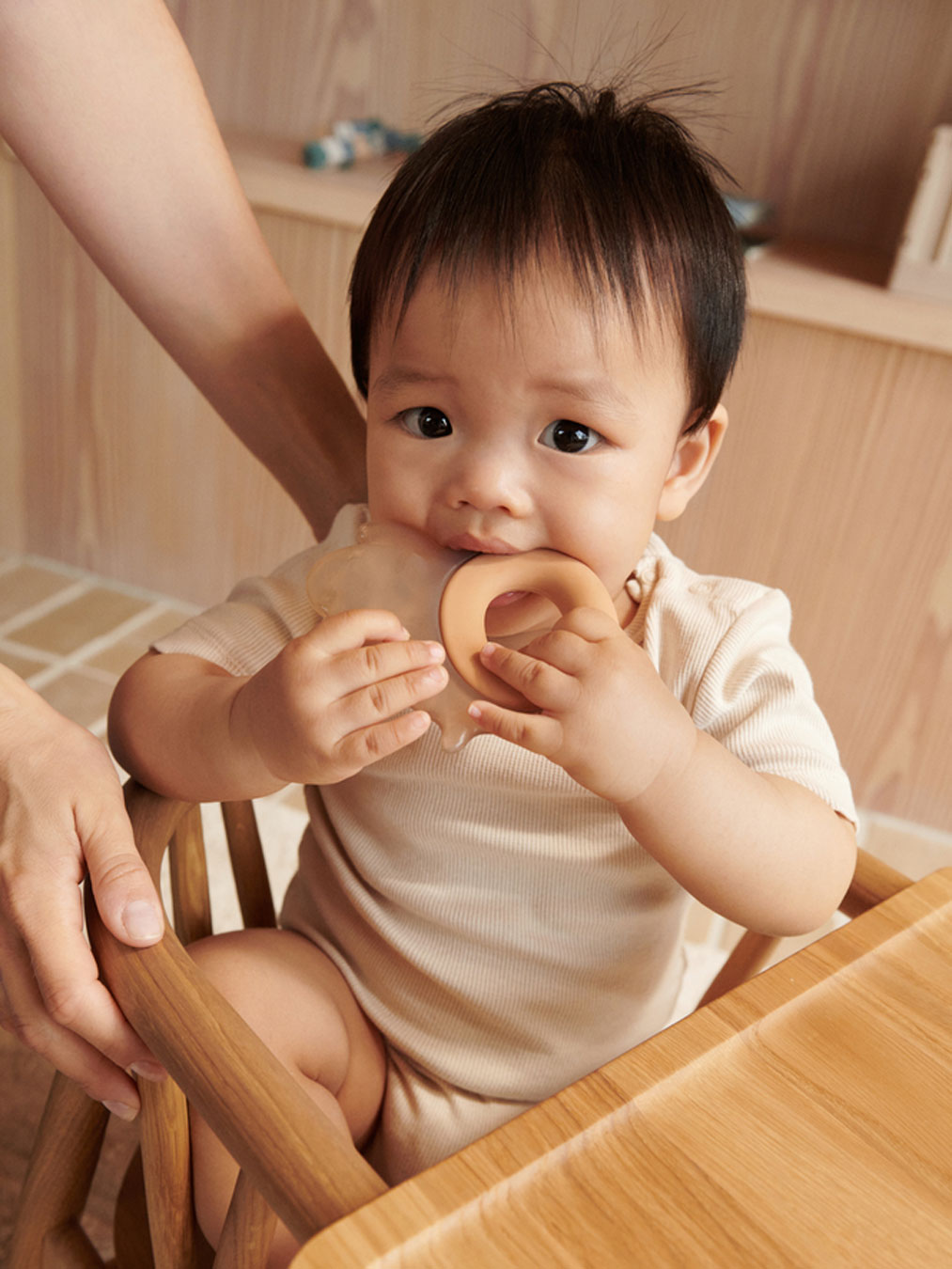 Soulagez les gencives de bébé avec ce duo d'anneaux éléphants Rita rose et sable, rafraichissants. A placer au réfrigérateur, pour un apaisement rapide des douleurs dentaires de bébé.