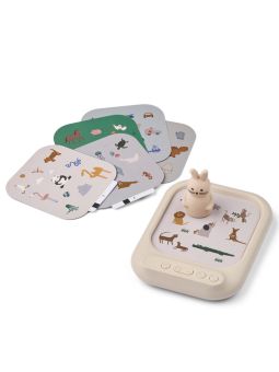 Appuyez sur le bouton On/Off pour mettre en marche le tableau, insérez une carte de votre choix dans l'emplacement prévu, et positionnez le lapin sur les animaux ou objets pour émettre les sons associés. Un jeu ludique associant son, images et motricité.