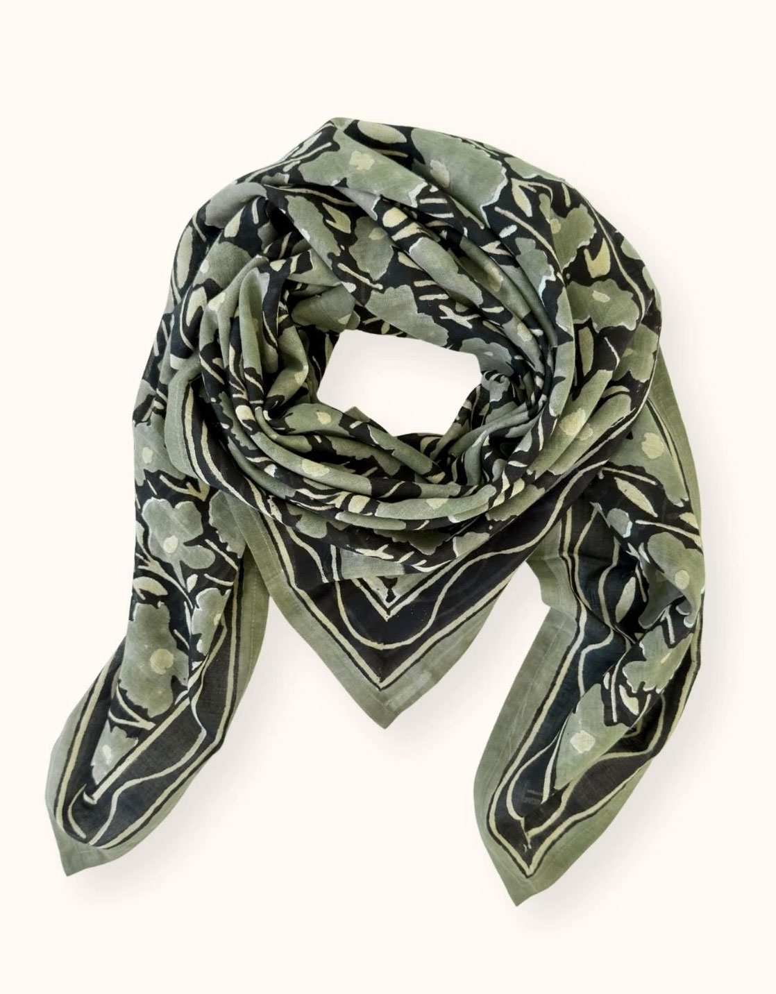 Les couleurs des foulards sont réalisées à partir de pigments naturels, cette confection artisanale peut donc entraîner des "irrégularités" d'impression des couleurs, ce qui fait tout le charme de ces foulards.