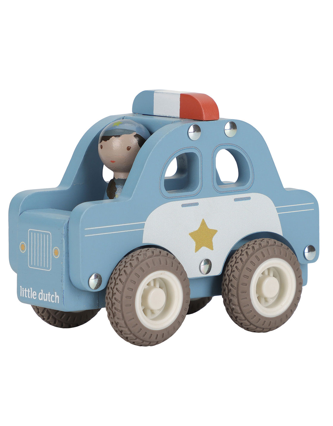 La voiture de police en bois est facile à saisir par les jeunes enfants grâce à sa forme géométrique.