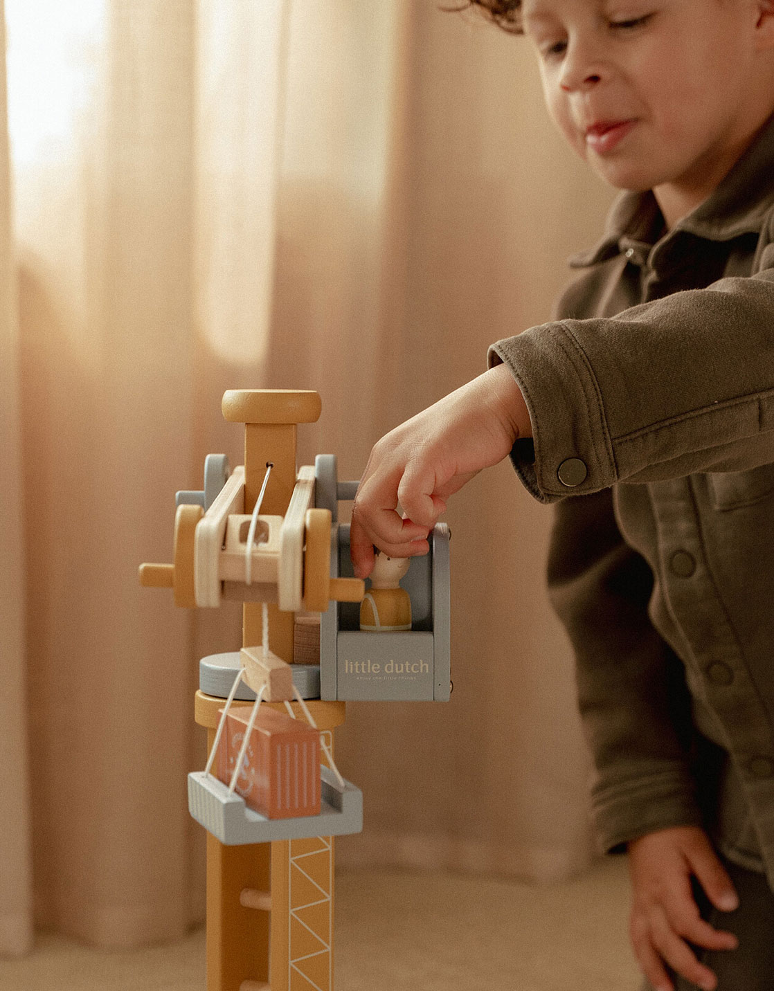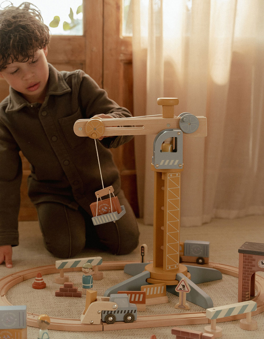Les enfants vont pouvoir s'amuser seul ou à plusieurs avec ce set de chantier de construction avec une grande grue en bois.