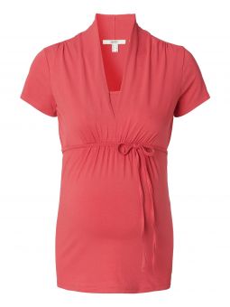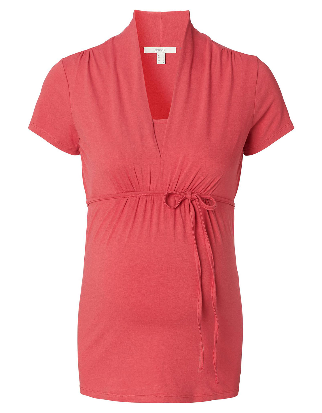 Un joli et confortable haut rouge coquelicot pour future maman avec un col légèrement montant, pour un discret décolleté qui mettra votre silhouette en valeur.