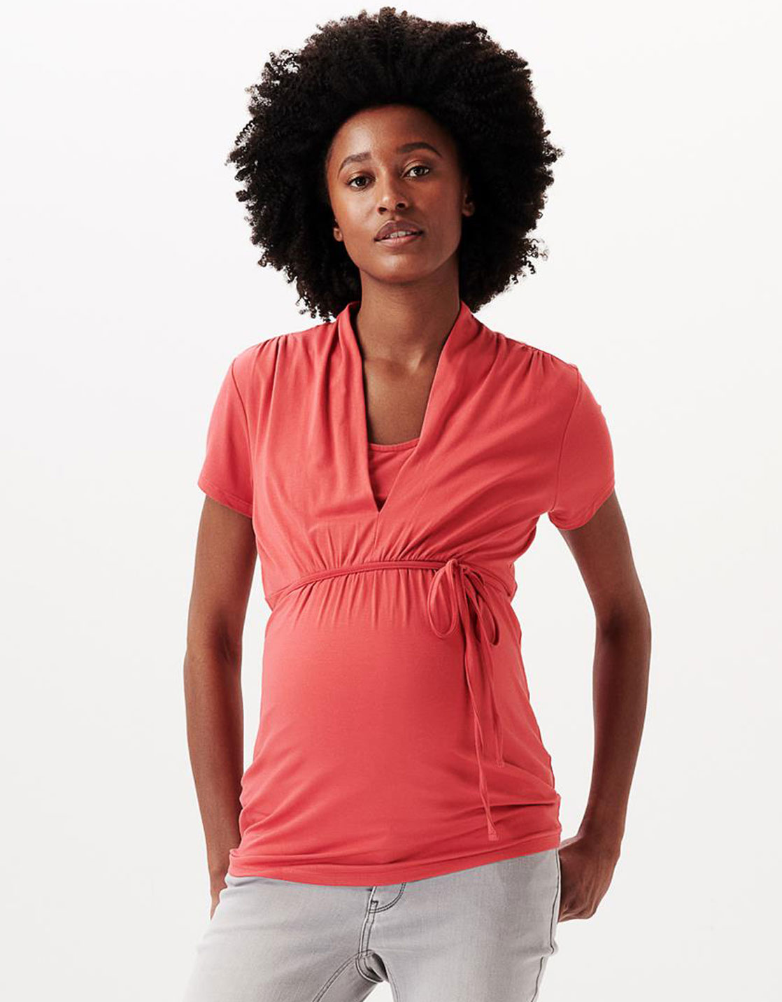 Haut de grossesse rouge évolutif allaitement à porter avec vos jeans et jupes future maman