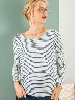 Confectionné en jersey doux avec un motif intemporel à rayures marine et écru, il couvre parfaitement le ventre de la future maman jusqu'à la fin de la grossesse