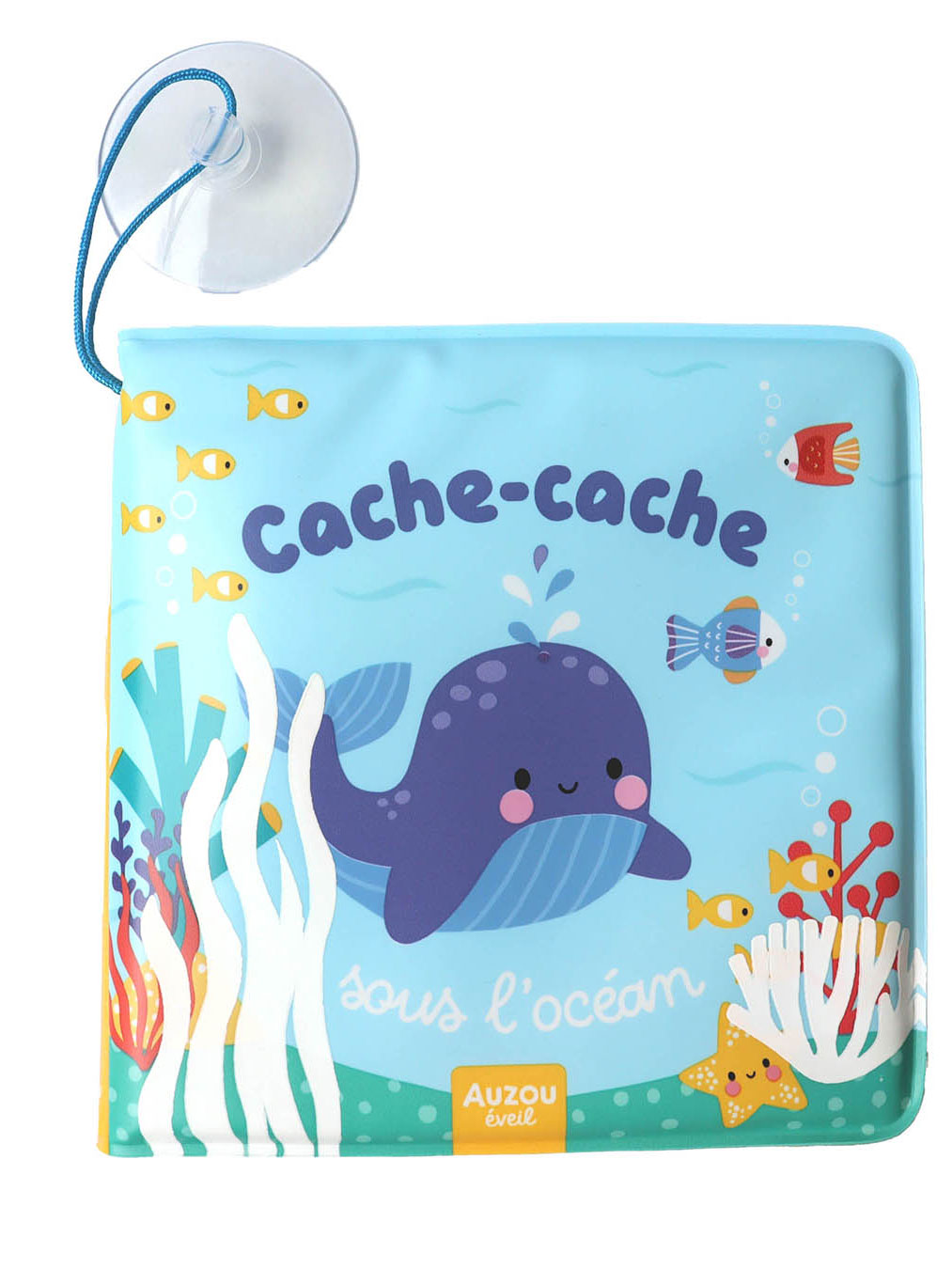 Pratique, une ventouse permet de suspendre le livre dans la baignoire ou douche, pour une manipulation plus facile par les touts-petits.