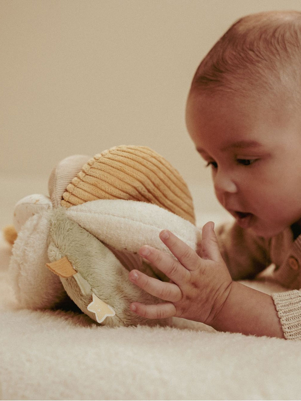 Balle de préhension ergonomique et texturisée de la collection Newborn que bébé va aimer manipuler.