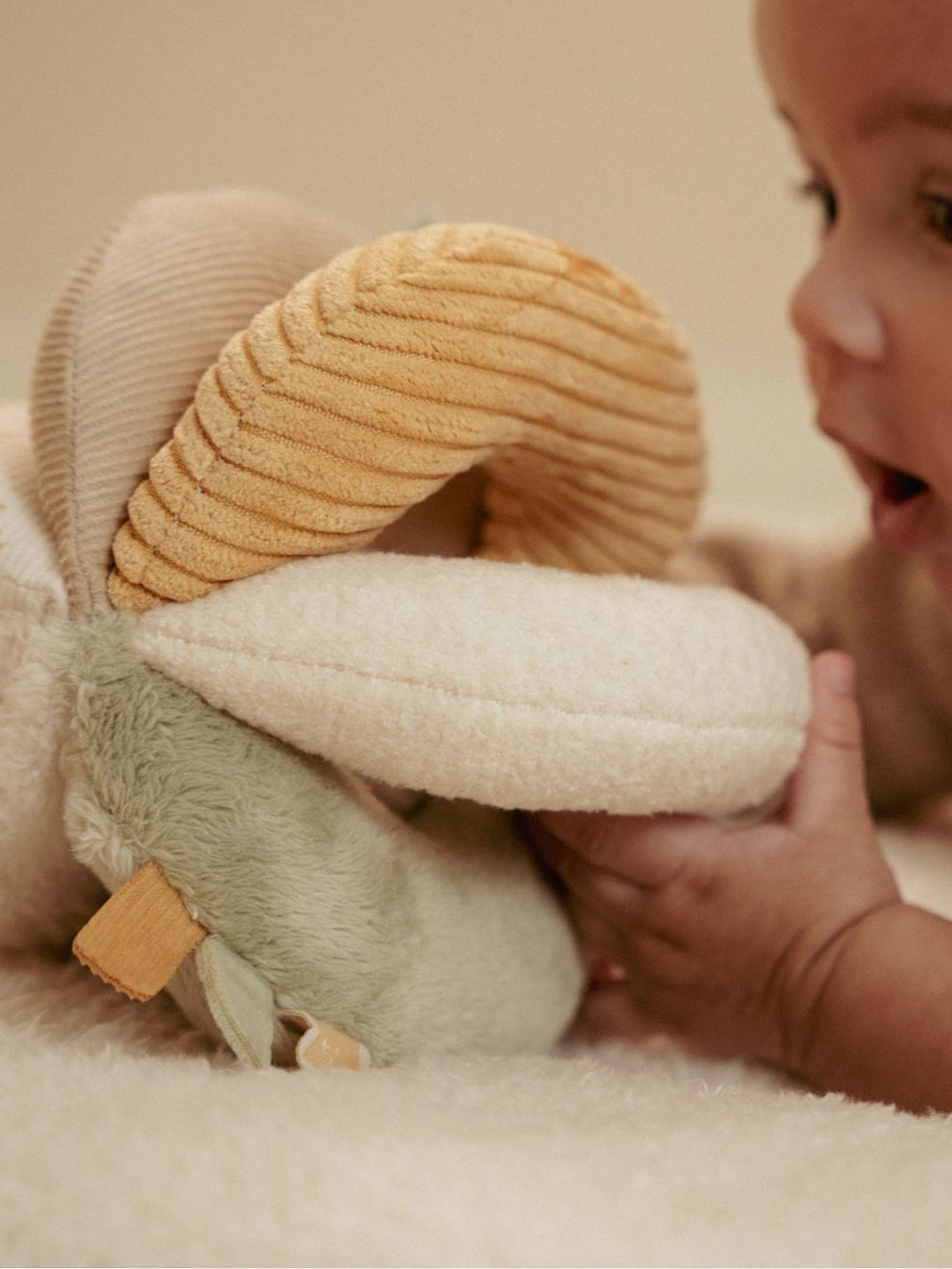 Bébé va explorer les différentes matières et jeux de couleurs, un outil de développement parfait pour commencer à attraper les objets.