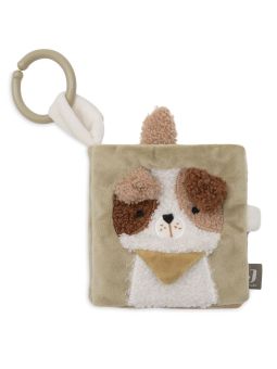 Livre en tissu Tiny Park qui va occuper bébé au travers de ses pages colorées et texturisées pendant ses promenades. Vous pouvez l'attacher à la poussette grâce à son anneau.