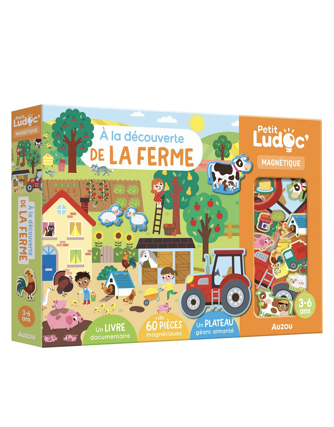 Un coffret comprenant un plateau géant sur le thème de la ferme, magnétique, sur lequel les enfants s'amuseront à aimanter les animaux, le potager, et eutres décors.