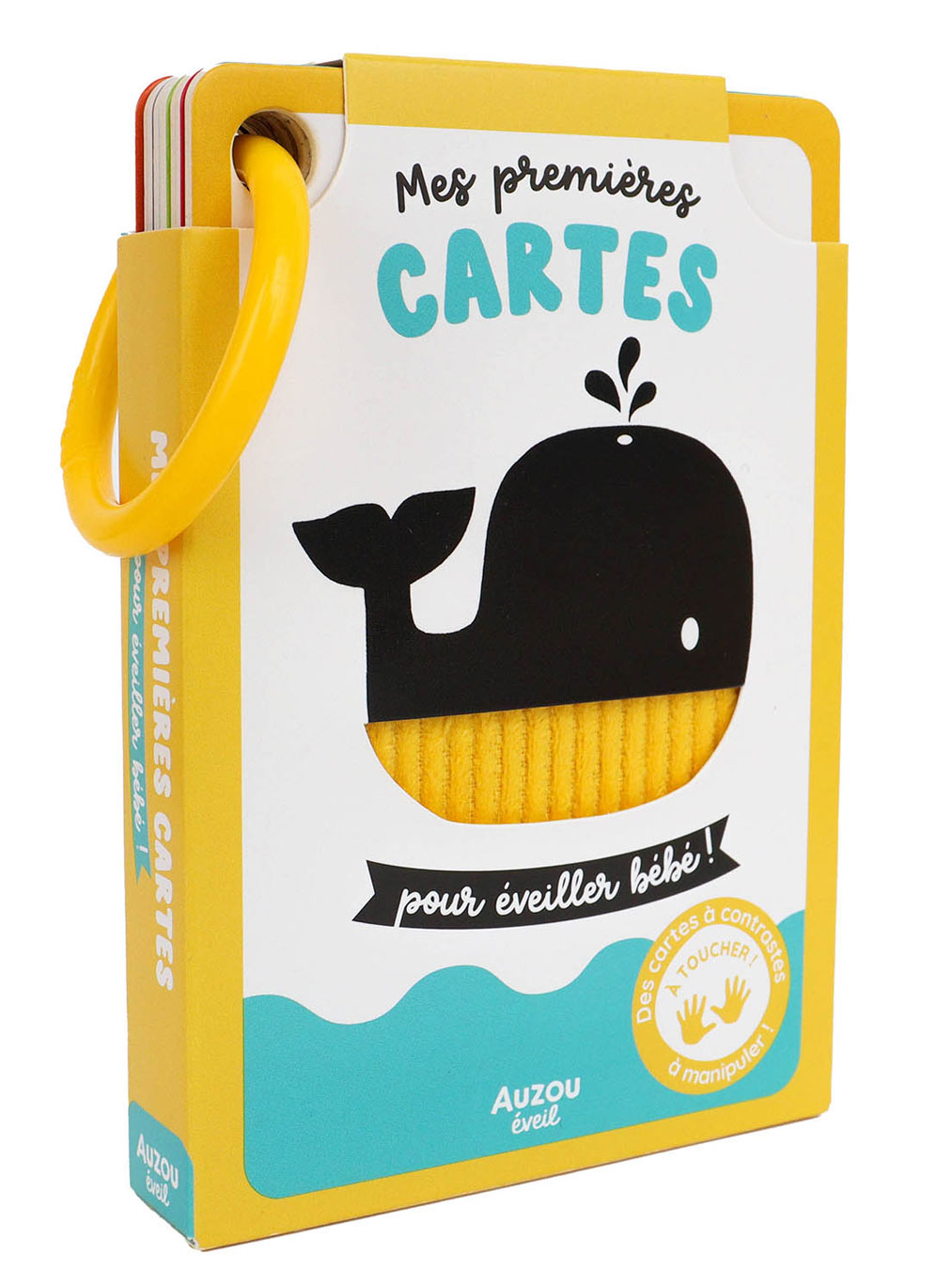 Une idée de cadeau pour une naissance, ce set de cartes imagier en noir et blanc pour éveiller bébé. Des matières à toucher et un anneau détachable pour les manipuler séparément.
