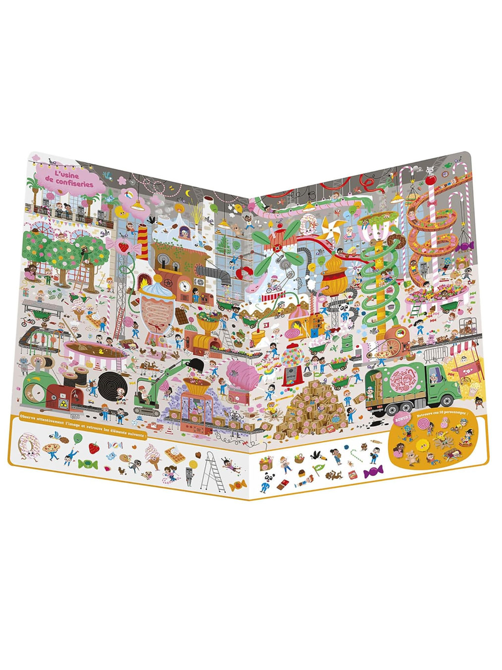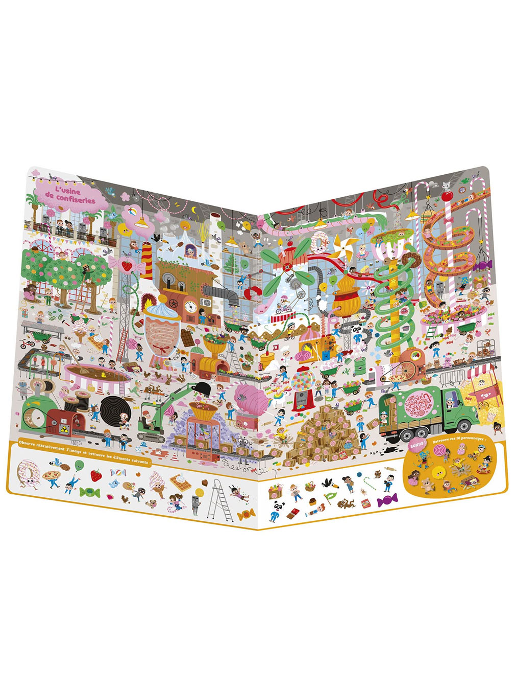 Vos enfants vont partir à la recherche des éléments dans chaque univers : L'usine à bonbons, le parc, les vacances, les fêtes d'anniversaire etc.