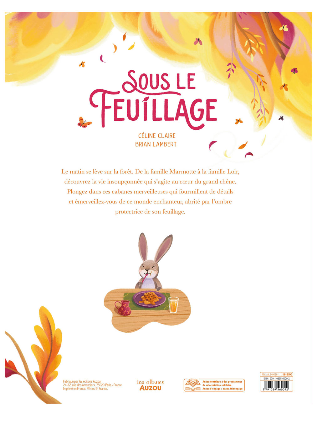 L'album Sous le feuillage conte la vie des animaux habitant le grand chêne, du lever au coucher. Plongez dans ces habitats merveilleux fourmillant de détails et découvrez la vie insoupçonnée de toutes ces familles.