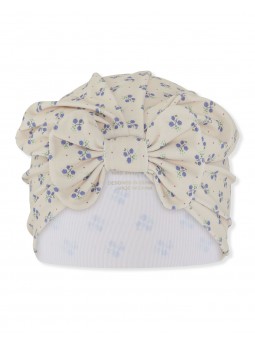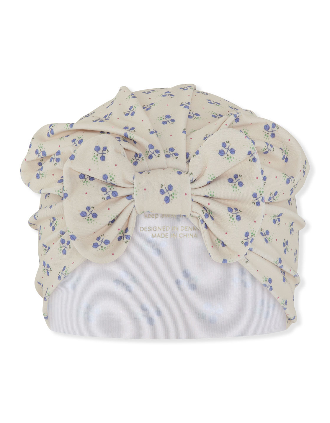 Turban de bain motif "blue bell" protégeant des ultraviolets, indice 50+, avec un noeud sur le devant.