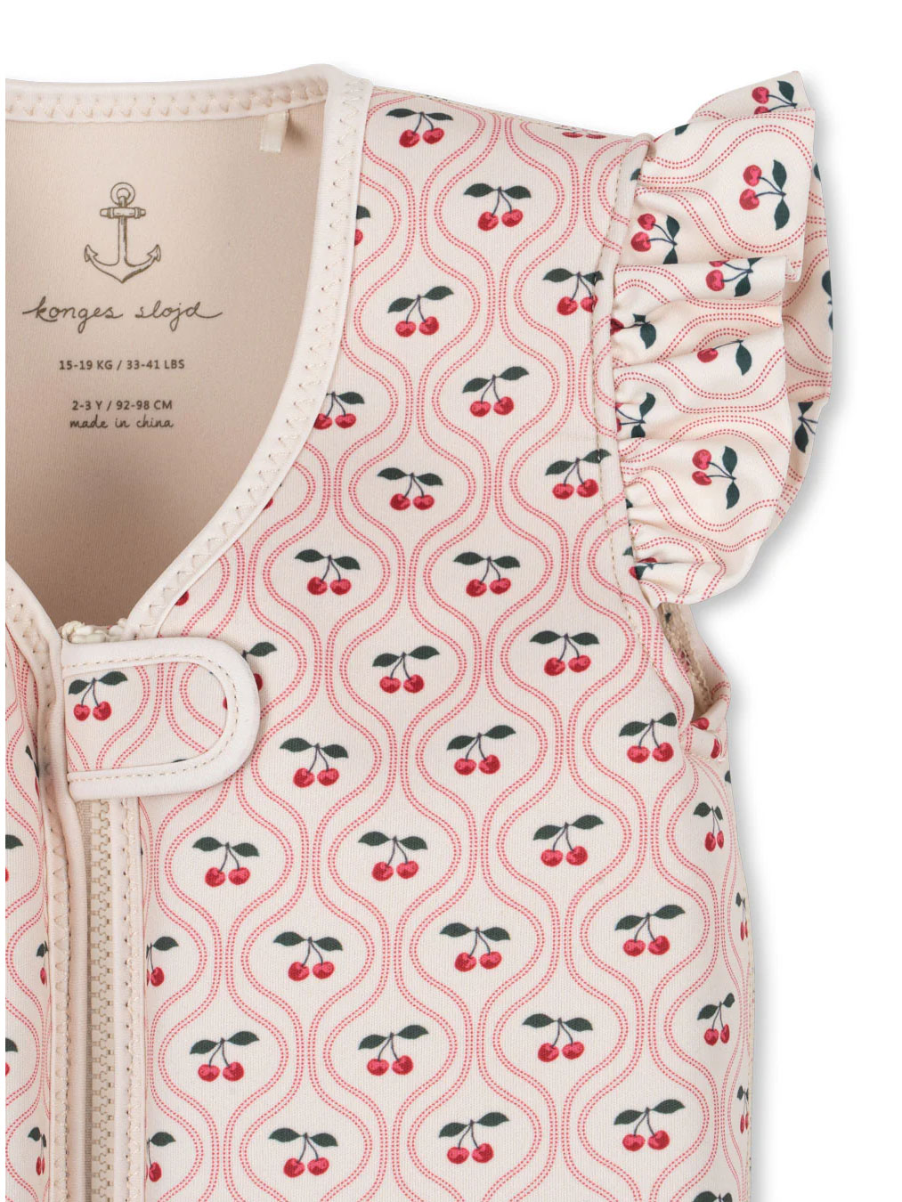 Gilet de flottaison en néoprène motif cerises "Cherry pink" pour s'amuser dans l'eau et apprendre à nager.