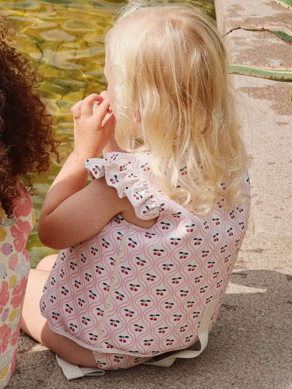 Un après-midi plage ou piscine de programmé ? Apprenez aux enfants à nager et avoir confiance dans l'eau en leur enfilant ce gilet flotteur en néoprène de la collection "Cherry pink".
