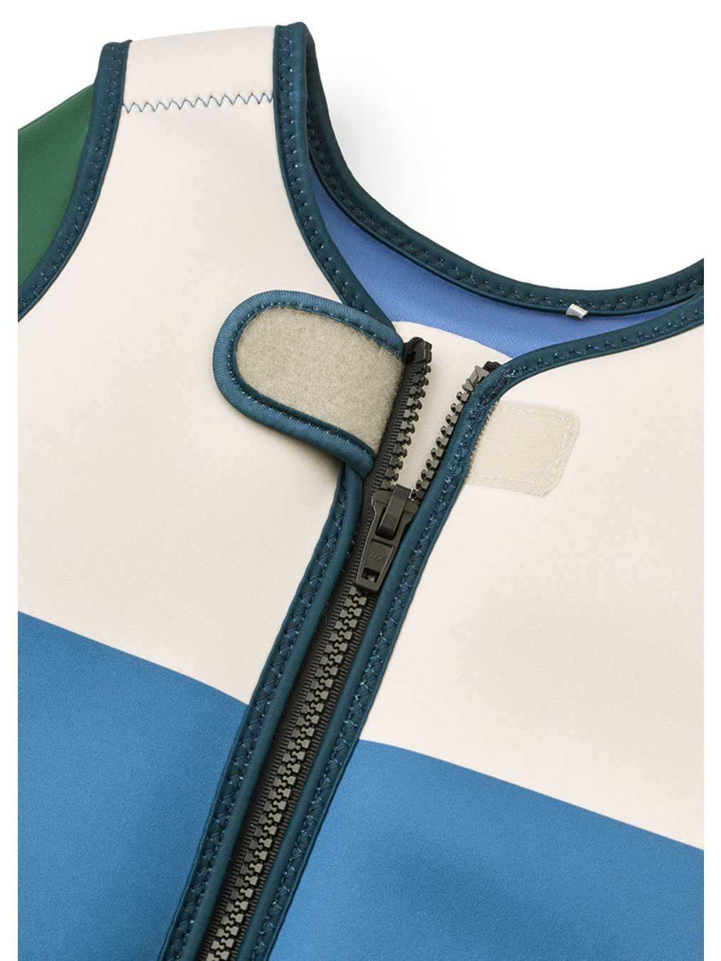 Un après-midi plage ou piscine de programmé ? Apprenez aux enfants à nager et avoir confiance dans l'eau en leur enfilant ce gilet flotteur en néoprène de la collection Riverside avec un mix de blocs de couleur.