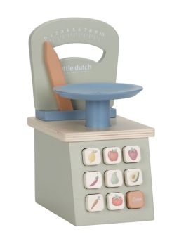 Balance de marchande en bois, posez vos fruits et légumes sur le plateau, votre enfant adorera voir l'aiguille monter et vous annoncer avec plaisir le poids et le prix de votre marchandise après avoir enregistré sur les touches la composition de votre panier