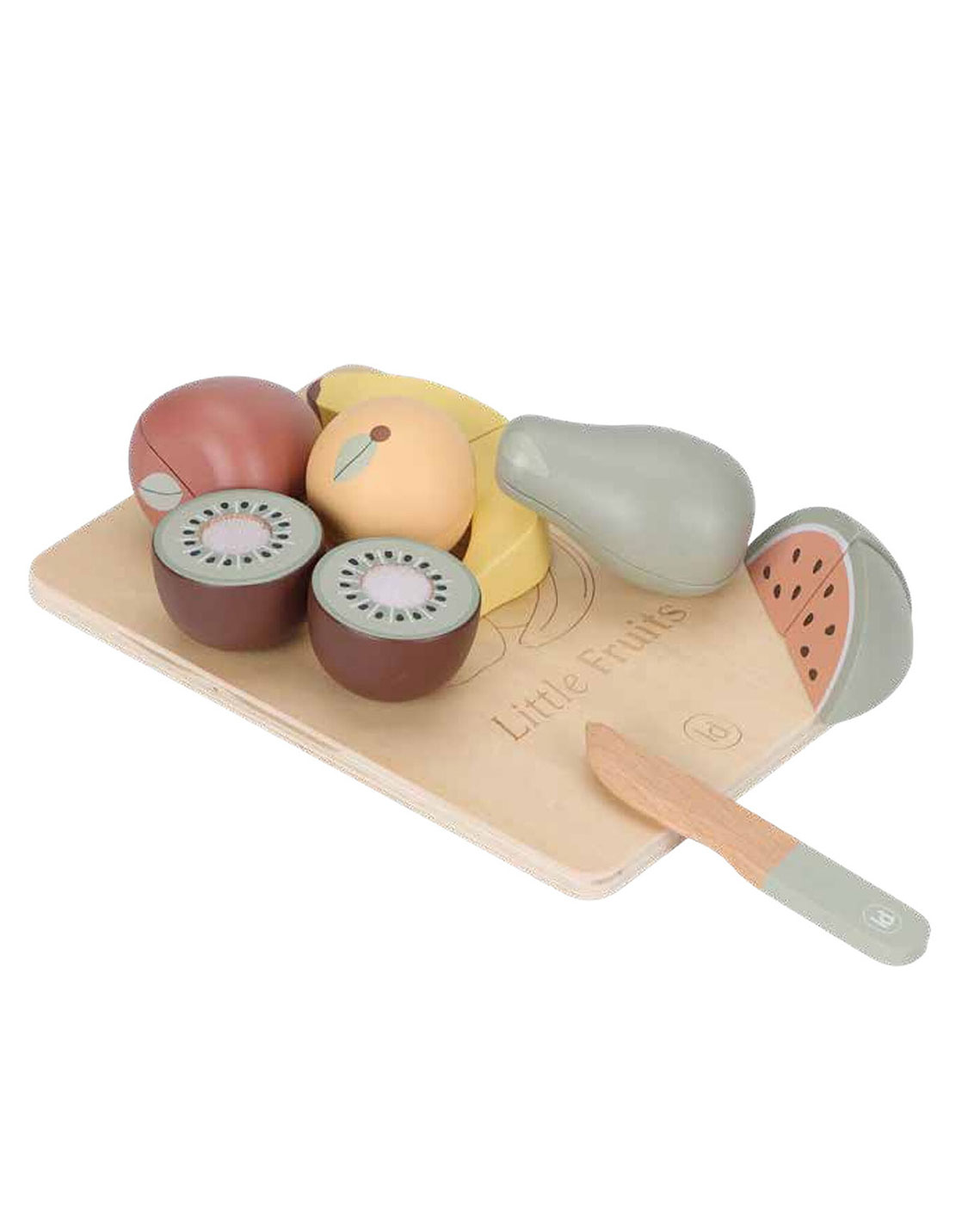 ♦ Contient 1 planche à découper, 1 couteau en bois et 6 fruits