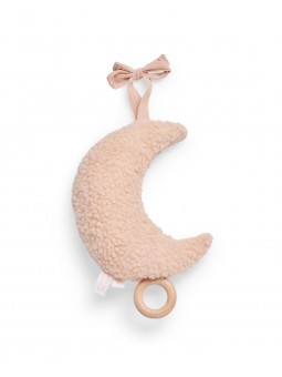 Lune musicale rose à suspendre émettant une douce mélodie lorsqu'on tire sur la ficelle.
