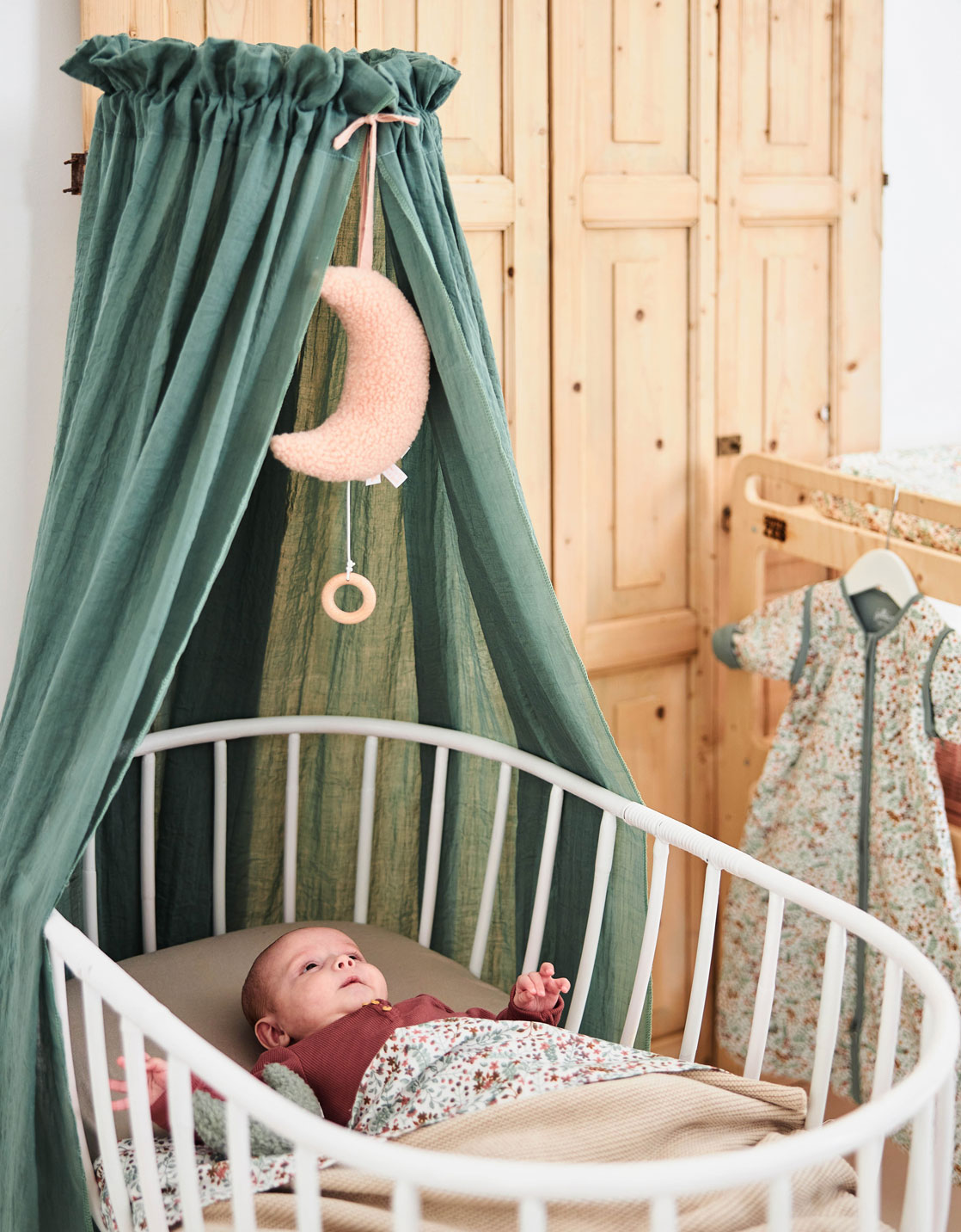 Cette jolie lune rose toute douce émet la mélodie "Tu es mon rayon de soleil" en tirant sur l'anneau en bois. Habituez bébé à cette douce musique en le plaçant près du ventre de la future maman pendant la grossesse.