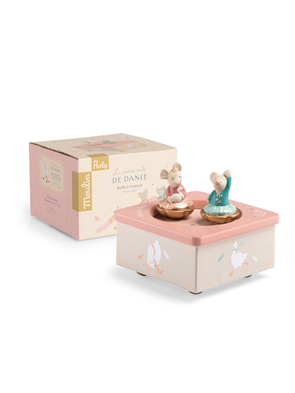 Regardez les deus souris se dandiner sur la joyeuse musique ! Cette boîte à musique ronde est décorée d'une scène de l'adorable thème La petite école de danse.