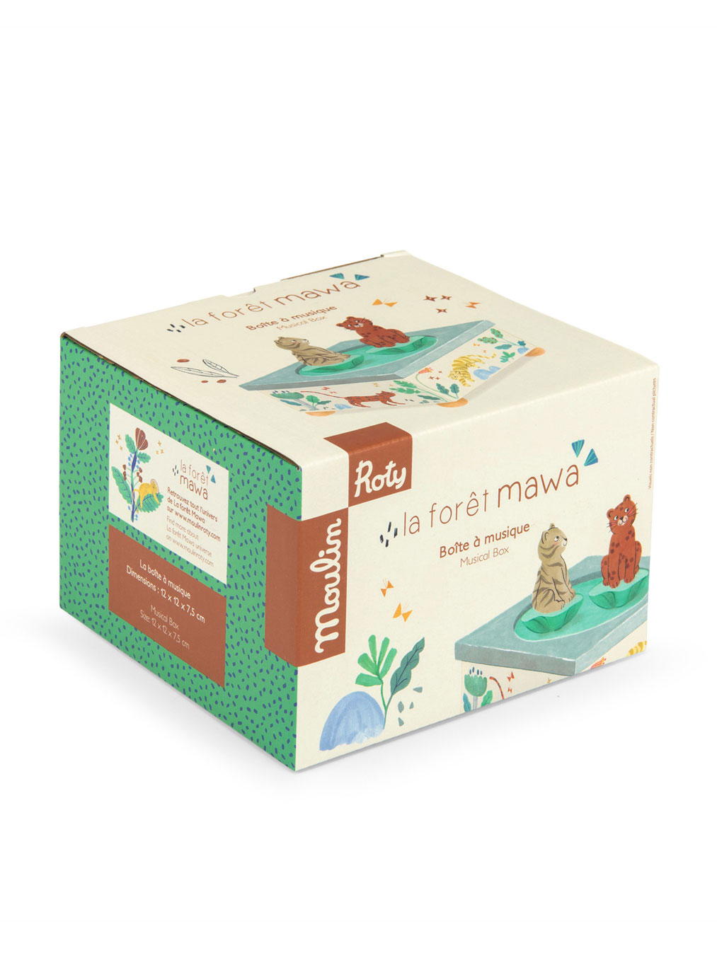 Regardez Baboo et Taïgo virevolter au son de la joyeuse musique ! Cette boîte à musique ronde est décorée d'une scène aquarelle de l'adorable thème de la forêt Mawa.