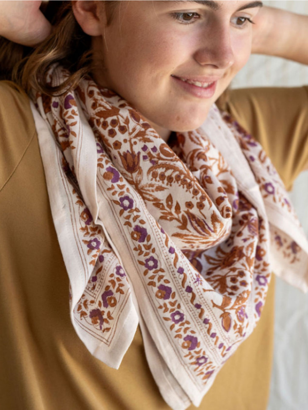 Un superbe foulard Kali Cayenne imprimé à la main sur un coton doux et léger.