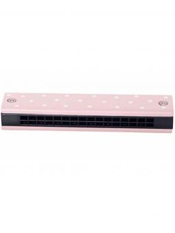 Harmonica rose à pois blancs en bois avec lequel votre enfant vous fera écouter de douces mélodies.